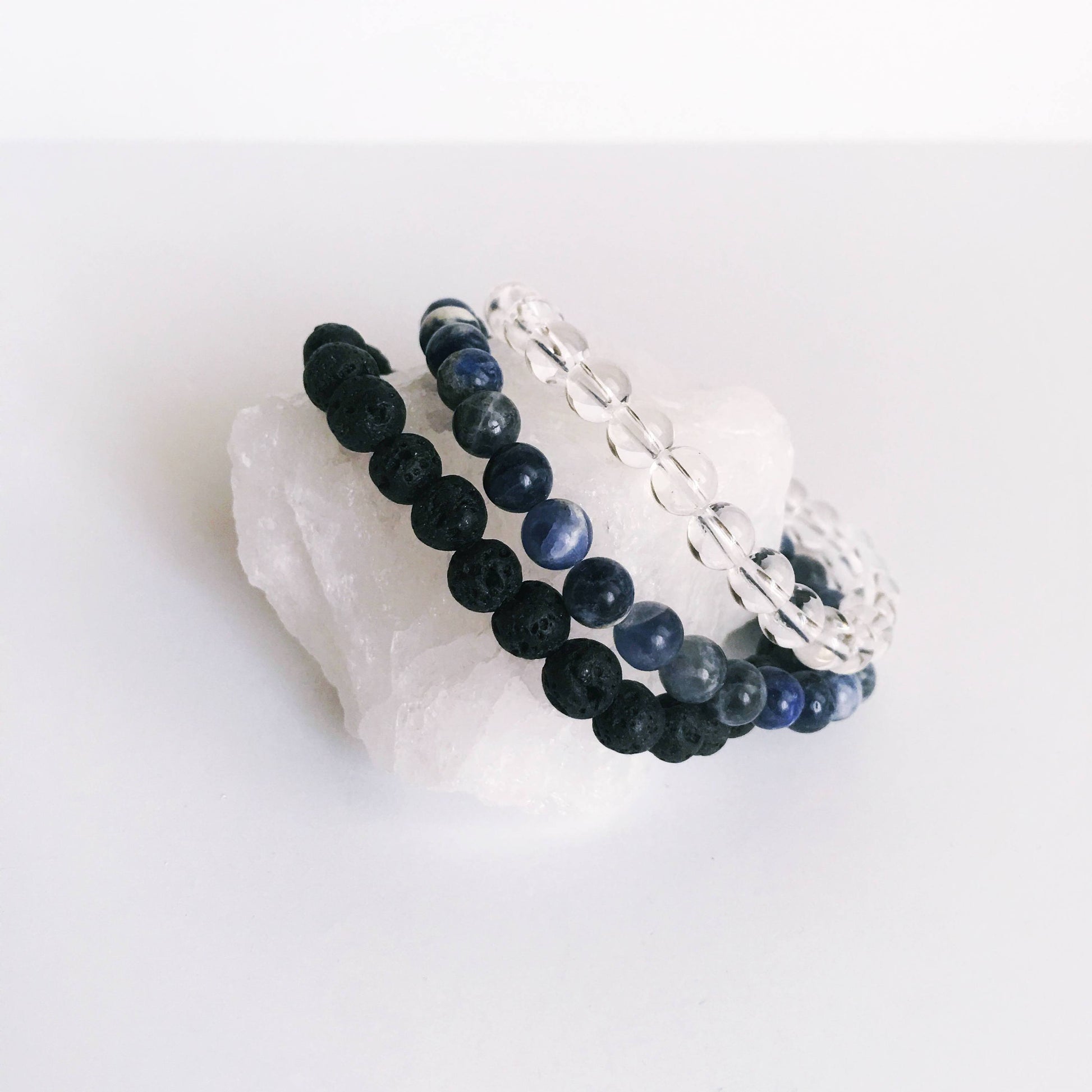 Crystal Quartz, Lava Bead & Sodalite Gemstone Bracelet Set